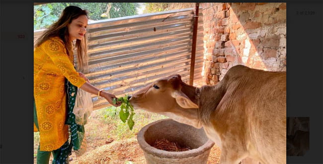 गोपाष्टमी के अवसर पर फिल्म अभिनेत्री रोशनी सिंह ने किया गऊ पूजन