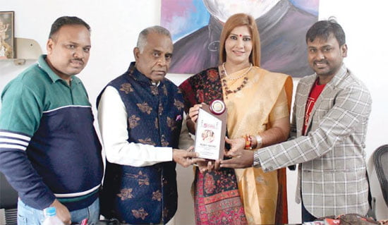 नई दिल्ली। भाजपा दिल्ली प्रदेश कार्यालय पर महानगर मेल के अध्यक्ष श्री रणवीर गहलोत व संस्था के सदस्यों ने दिल्ली भाजपा महिला मोर्चा की उपाध्यक्षा श्रीमती रुबी यादव को पांचवें महानगर ग्लोबल अवीवर्स अवार्ड-2021 से सम्मानित किया।