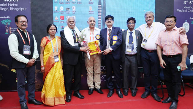 पद्म श्री प्रो. डाॅ. बी. के. एस. संजय, पद्म भूषण प्रो. डाॅ. बी. मुखोपाध्याय ओरेशन से भागलपुर में सम्मानित