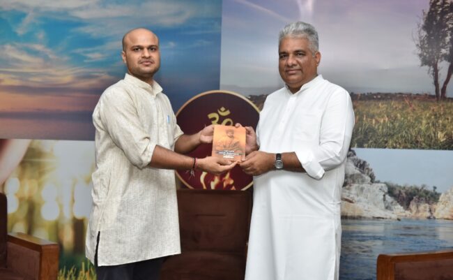 Nikhil Yadav presented his book based on Vivekananda to Cabinet Minister Bhupendra Yadav.