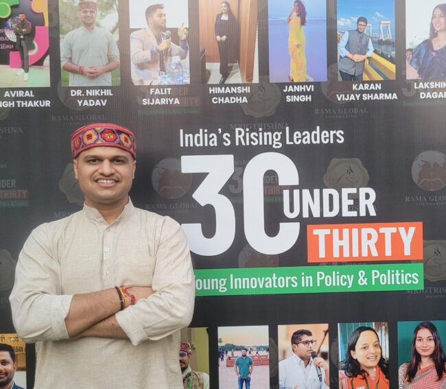 Dr. Nikhil Yadav, a resident of Dhani Chudaili village in Narnaul tehsil of Mahendragarh district, Haryana, has been included in the prestigious “30 Under 30” list organized by Mrigtrishna Magazine and Rama Global Foundation. This recognition honors 30 inspiring young individuals under the age of 30 from across the country who have made exceptional contributions and notable achievements in their respective fields.