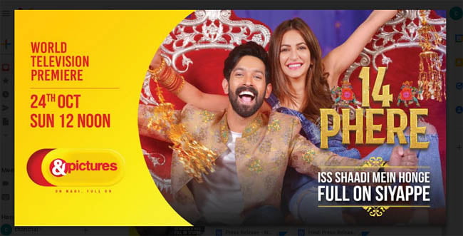 फिल्म 14 फेरे का वर्ल्ड टेलीविजन प्रीमियर एंड पिक्चर्स पर 24 अक्टूबर को