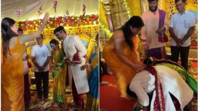 एक्ट्रेस के रिएक्शन ने फैंस को किया हैरान, रश्मिका मंदाना को देख स्टेज पर पैर छूने आए दूल्हा-दुल्हन